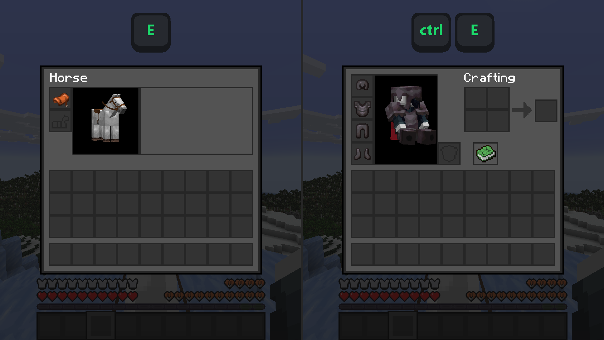- Horse Buff pulls from your Minecraft keybinds, so if you change your inventory/sprint key, that will change what you need to press to access your survival inventory