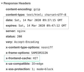 expires is set to a future date, in this example approximately 10 minutes from the current time, which is the 600 second default setting. The cache expiry time is configurable.