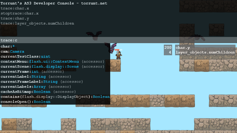 An AS3 class that let's you access every public variable/function (that can be accessed from your main class) in your project while it's running using a very simple console user interface.