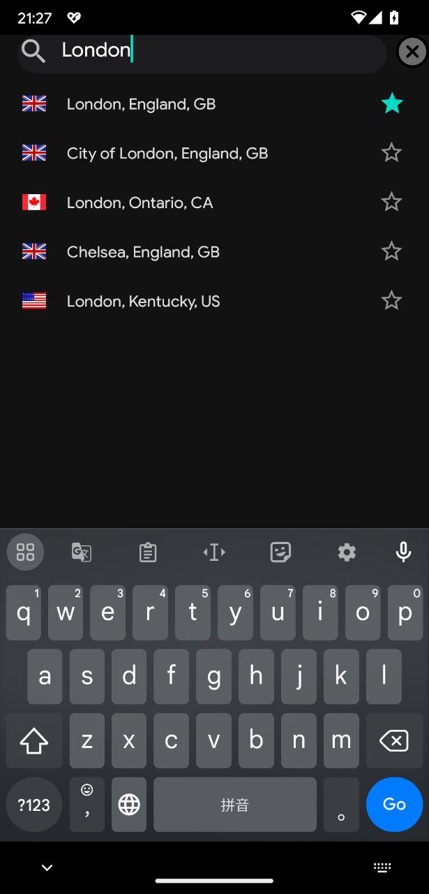 WeatherInfo 功能 一个基于OpenWeather API的天气预报软件,可以查询近7日的天气信息,还可以收藏常用的地点以便随时查看。 截图 使用 此应用使用了 Open Weather API。如要使用此应用,应先到OpenWeather网站创建密钥,并将密钥按照如下格式 WeatherApiKey="xxxxxxxxxx" 填写到local.properties文件。