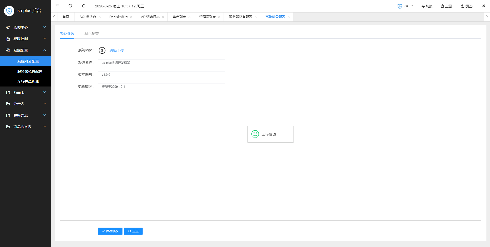 - 封装 JavaWeb 常见功能:文件上传、角色授权、Redis控制台、API日志统计、跨域处理 等等。