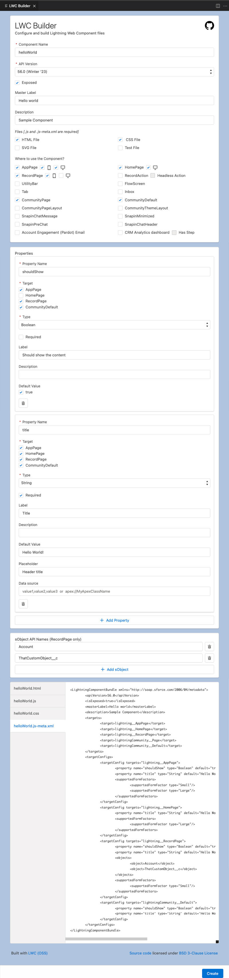 See also lwc-builder-ui. lwc-builder is a VSCode Extension that launches lwc-builder-ui in VSCode context.