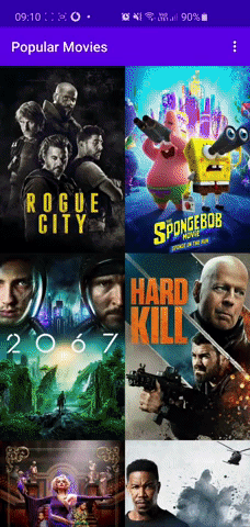 The App displays a scrolling grid of movie posters, when a movie is selected a details screen is launched, which provides the user with more information about the movie, and a few trailers they which can watch on youtube.