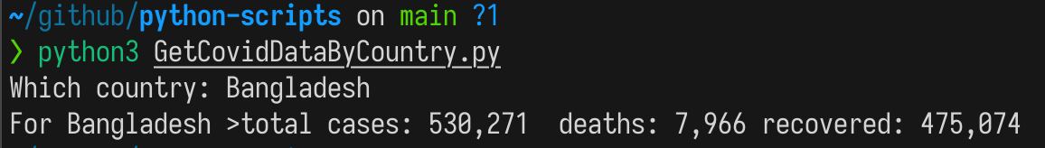 Gets covid stats from Worldmeters for a country. Takes a country name as a input.