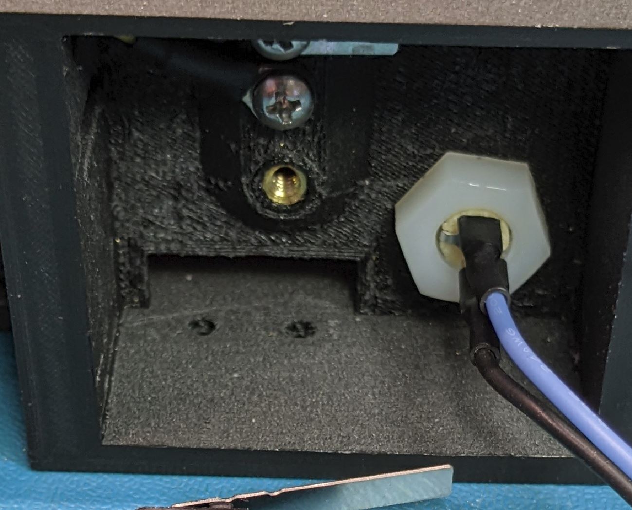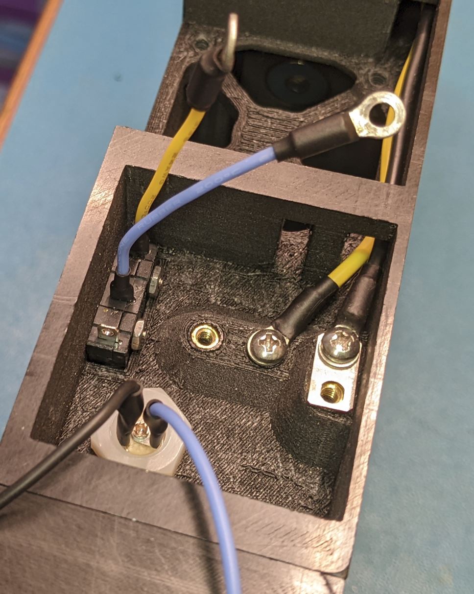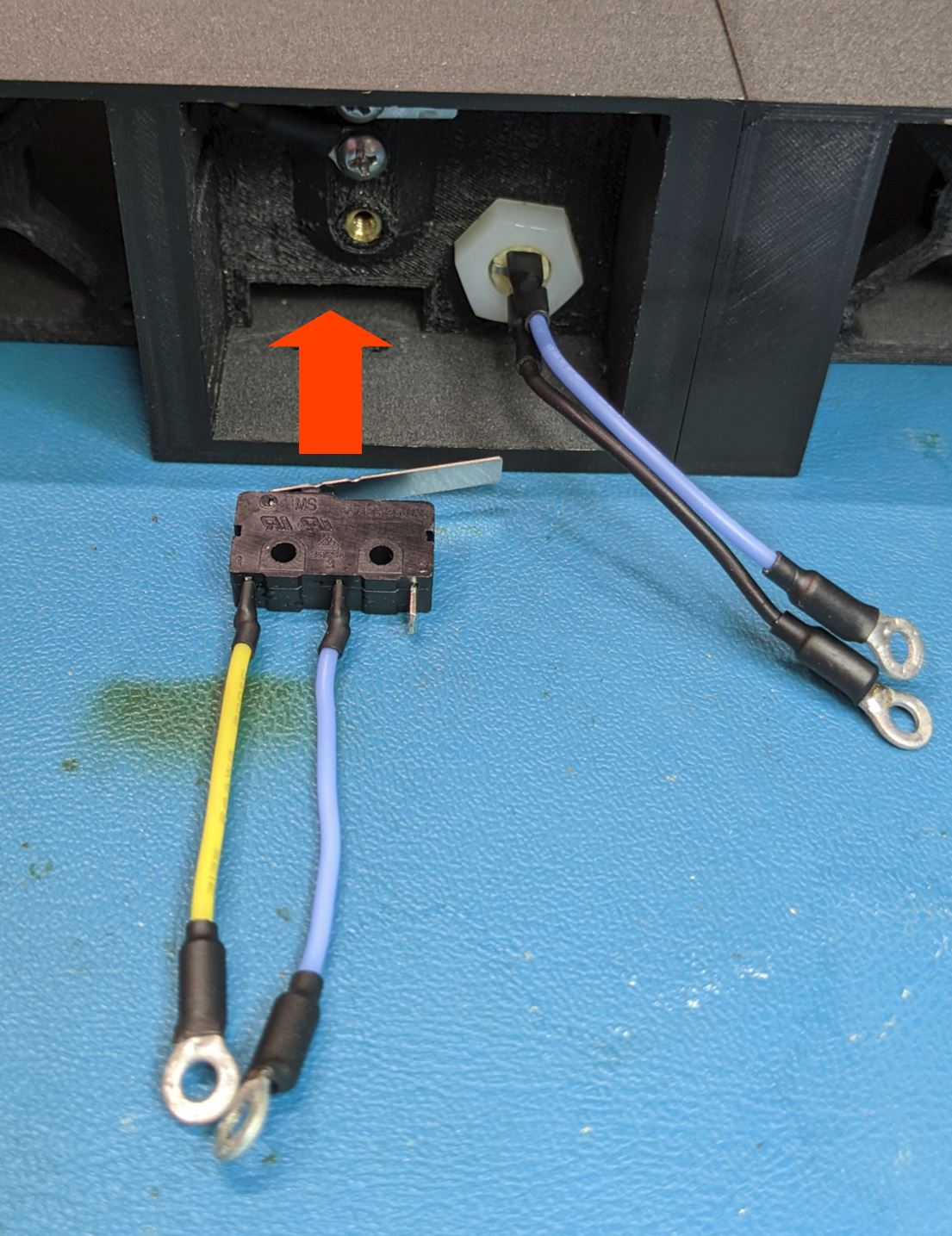 Use two #2-56 nuts to secure the switch in place. Before tightening the nuts, give the switch a firm push to make sure it is as far forward (towards the front of the module) as possible.