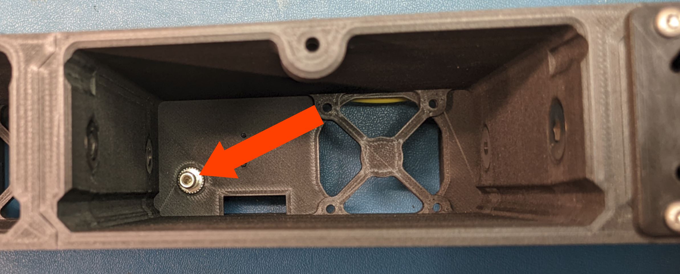 From the bottom of the module, look to make sure the two mounting holes in the switch align with the two holes in the bottom of the case. When the holes align, use use two #2-56, 7/16" LG FHMS to hole the switch in place.