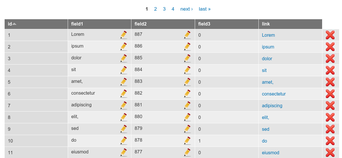 This module allows developers to expose drupal-style queries (db_select) as a pageable-sortable ajax table with as little coding as possible:
