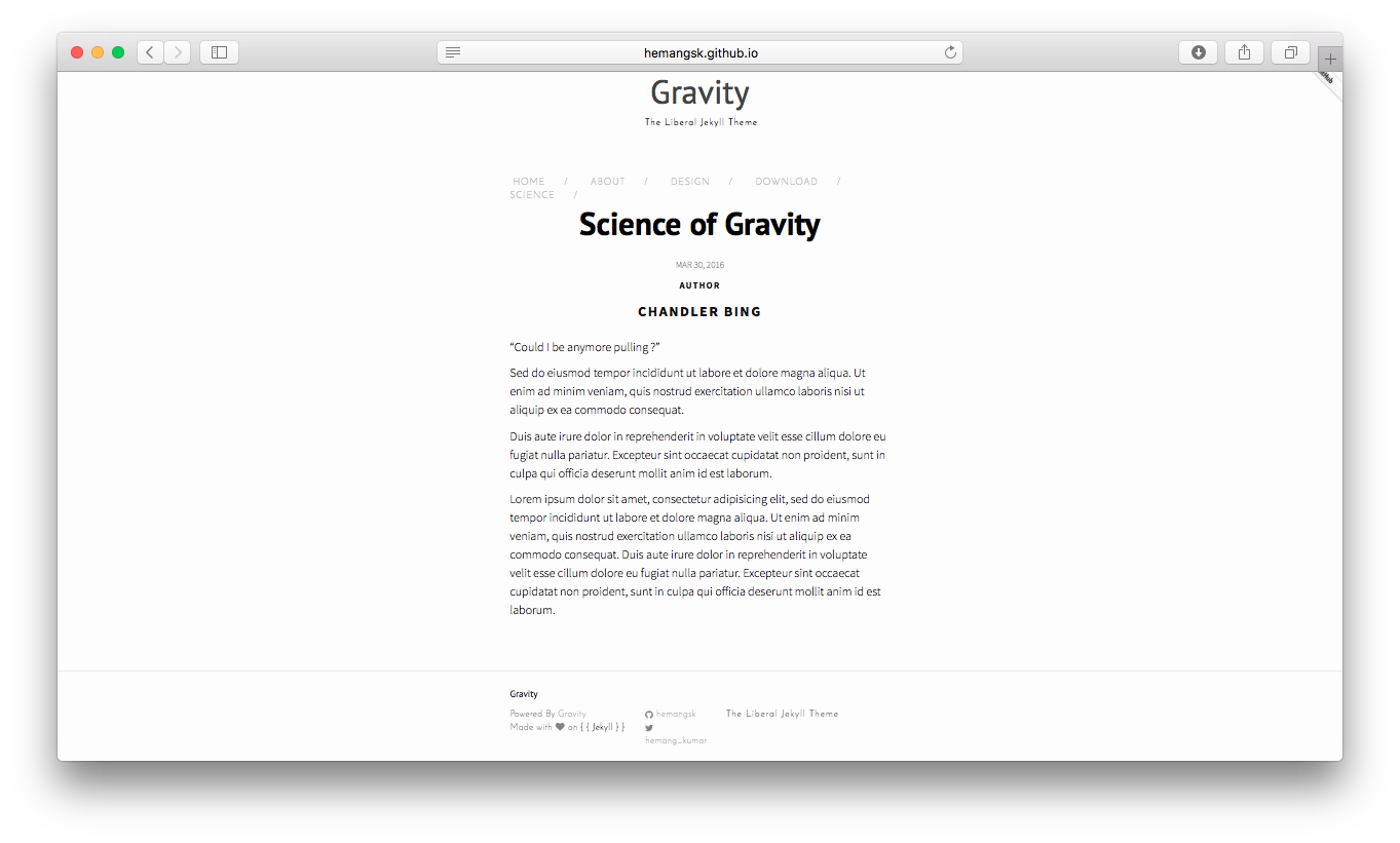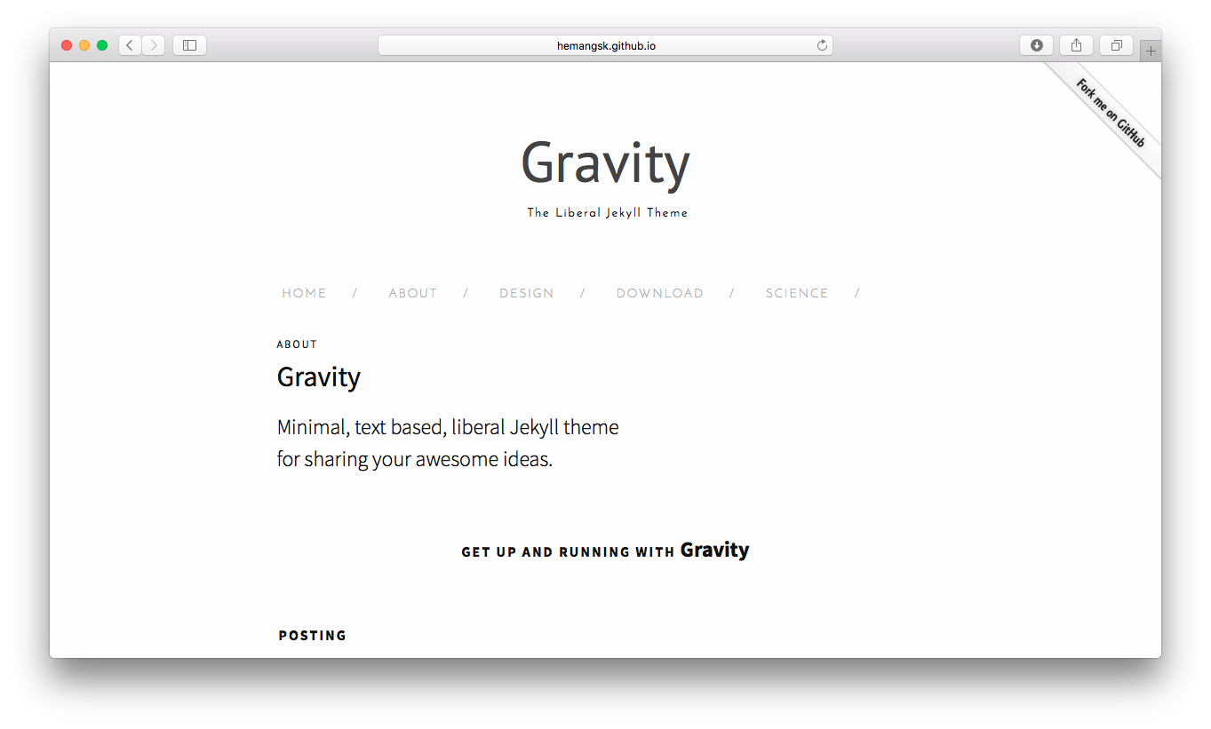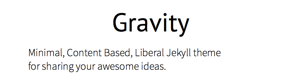 $ gem install jekyll-paginateOnce you have the required gems, you can go ahead and clone the Gravity repository or download a zip of the master branch.